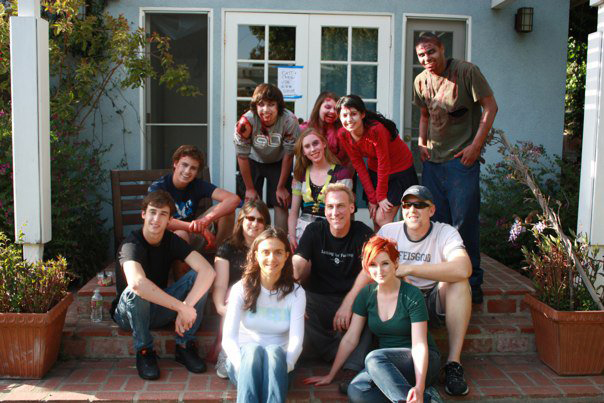 Wow. That’s all I can say right now. We filmed “Zombies Take The Schoolyard” over the last weekend, pulling two full days of production with a little time left over to enjoy our Easter baskets. I realize now that keeping a production blog while directing a film of any length is biting off more than I could chew, so I promise to be more diligent about keeping the blog up to date the NEXT time around. I have some stills of the shoot that I will post over the next few days, but I want to get this one up today… FRONT ROW: Nicole Sacker (Producer/1st AD), Genevieve Lamb (Make-up); SECOND ROW: Branden Goodman (RALPH), Clea Frost (Producer/Sound), James Tuverson (Writer/Director), Ross Raventos (Director of Photography/Editor); THIRD ROW: Jordan Frank (SCOTT) and the ZOMBIES– Kevin Norman, Sarah Stettler (below), Kim Beavers (above), Tory Freeth and David Rivera. NOT PICTURED: Brian Jainese (Set Designer).