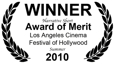 “Hours Before”, my short co-written and directed by Joel David Moore, will premiere at the Hollyshorts Film Festival on Tuesday, August 10. Check out the programming schedule here. I’m really excited to see it at the Laemmle Sunset 5 (8000 W. Sunset Blvd, 5 pm) because it’ll be my first “big screen” experience of anything I’ve written. Come on down if you can! UPDATE: Someone just emailed me that “Hours Before” also won its first award from the Los Angeles Cinema Festival of Hollywood (that’s a mouthful!) Details here. UPDATE 8/14/10: The festival was a lot of fun, the film was well-received (I think) and it was a real thrill to be there. UPDATE 8/17/10: “Hours Before” also won the Audience Choice Award for its screening night, August 10. Way to go guys!!